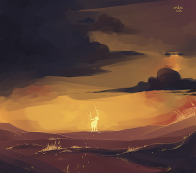 it's bambi's mother! she survived after all! . but really, love the composition and colors, I've always liked the anatomy of ungulates, it's graceful