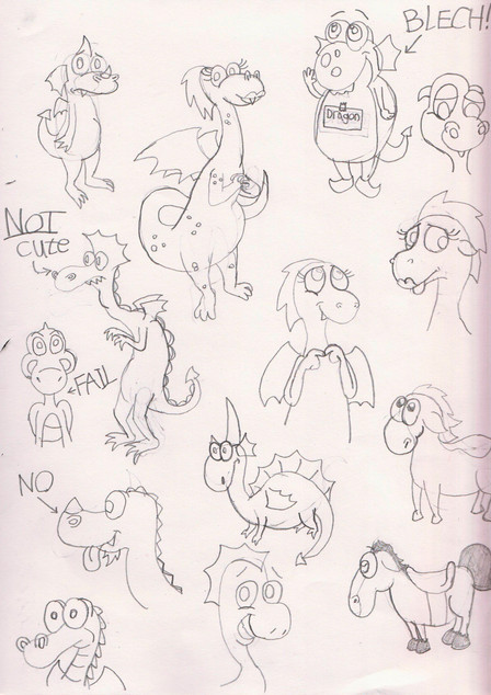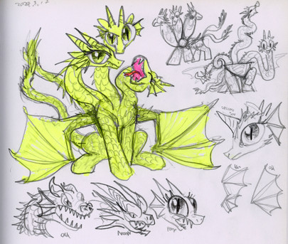 The bottom one is an aspid. The descriptions I found said that it has two wings and two legs, a beak and also can breath fire. Though, images from Yandex.ru gave me a lot of cockatrices, which is quite funny like yet another "know the difference" picture. So this is not the final design for aspids, and I will try to make them more similar to cockatrice.
