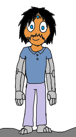 Appearance: Toby has light brown hair, and pale white skin although the right side of his figure has unnaturally black skin across his face, arm and leg. His left eye is a shining green but his right eye is a sinister purple. His face is young and shy as well, and he typically wears a green t-shirt and jeans but eventually starts wearing nicer outfits.