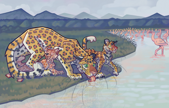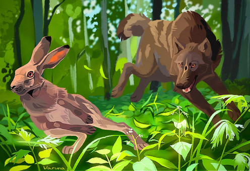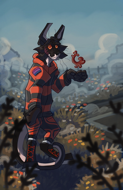 The first full illustration I’ve done of one of my own characters in quite a while! This is a bit experimental, more detailed than my previous backgrounds, and I really like the way it turned out. Here Sorrel is occupied with running for his life, which is pretty much a daily occurrence for him.