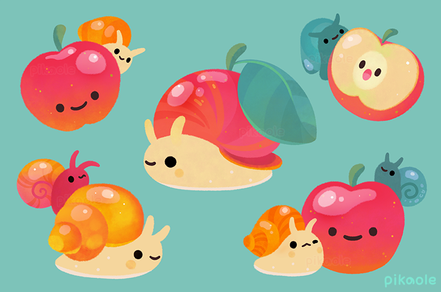 Some funny snails I did for the "peachy day" on IG on 2022I used to follow lots of snails profiles there c':