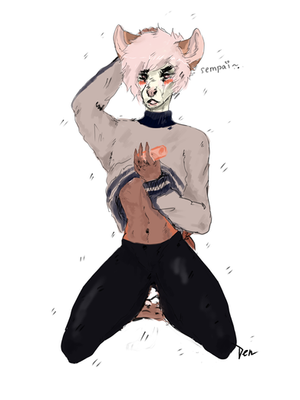 What a sexy and cute little sheep femboy. Love his pink fur and little speedo.