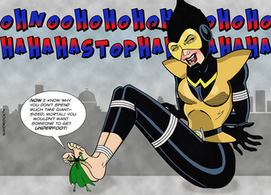 Specifics: Restrained in chair sensitive to activation of Pym particles. Restraint system will grow/shrink as subject does. Motorized brushes applied to soles of feet.