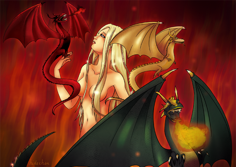 ***SPOILER ALERT*** This contains stuff from 'A Dance with Dragons'. That's Book 5 of George R.R. Martin's A Song of Ice and Fire (the Game of Thrones books). You don't wanna know what happens, just enjoy the pretty picture above and DON'T READ THIS.Streaks of intense orange were slowly fading to purple indigo through the skies above Meereen. Daenerys Targaryen made her way from the royal court of her pyramid up to her bedchamber. The sun cannot set quickly enough this night. Even the echoes of her footsteps resonated the ire and frustration of her court that day. She wanted to offer just rule and wisdom to her subjects with relevent problems. Instead, she had been faced with petty squabbles between neighbours; almost of all of which were certain to add resolve to the Sons of the Harpy who stood against her. A seventh audience from Hizdahr zo Loraq and his requests to re-open the fighting pits did not help her mood either. She smiled weekly out of respect for his resolve. When will he learn?