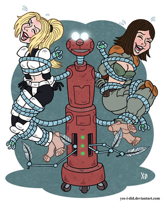 All the bots and devices in the engineering level have gone haywire!Β Aaaah!Unity (Sentinels of the Multiverse), Audrey Ramirez (Atlantis: The Lost Empire) and Kaylee Frye (Firefly/Serenity) caught in a tech tickle.Β Enjoy!