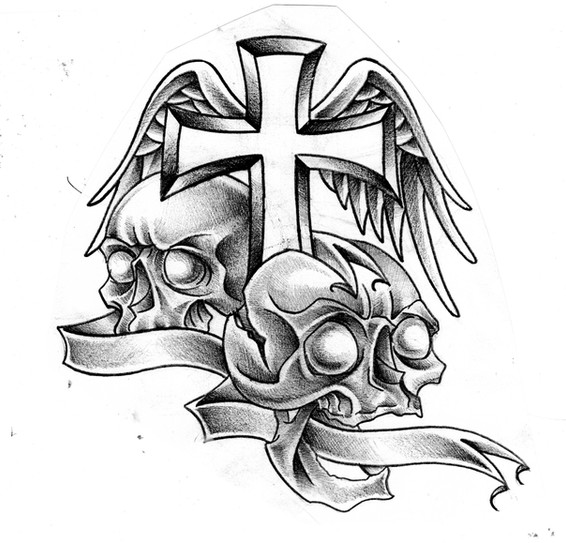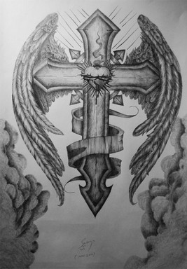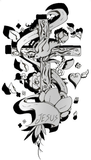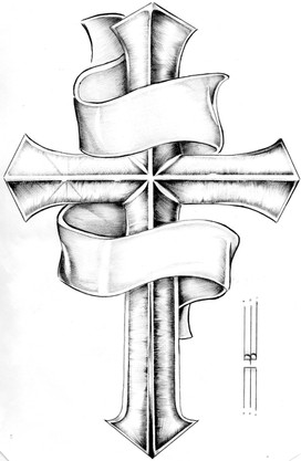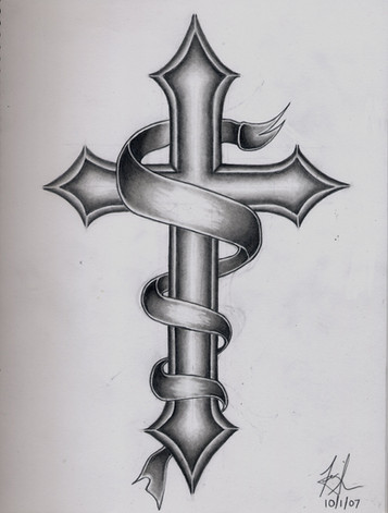 man this cam out nice....i sorta messed it up by trying to use paint to fix it but w/e ill post it n e way.yeah a friend asked me to design a cross tatoo with the banner goin around it and this is what i came out with...enjoytook less than an hour