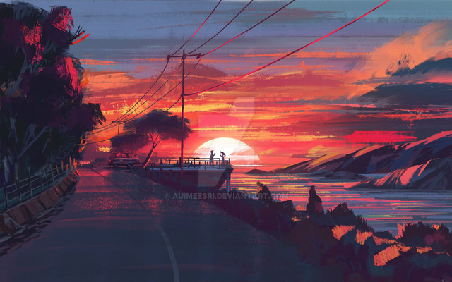 #anime #artwork #beach #birds #cartoon #colors #comics #digital #illustration #nature #orange #photoshop #sunrise #sunset #art