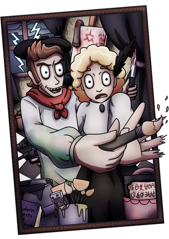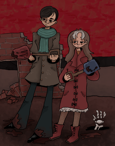 HeyThe idea behind this really grey and spooky drawing of Albert and Colette is the horror that something terrifying happens so close to you, in your own backyard if you will.