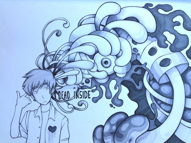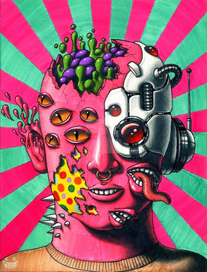I decided to revisit this concept as I have drawn Mitch experiencing stuff like this when put on medication for his anxiety as I wanted to experiment with some whacky colours.