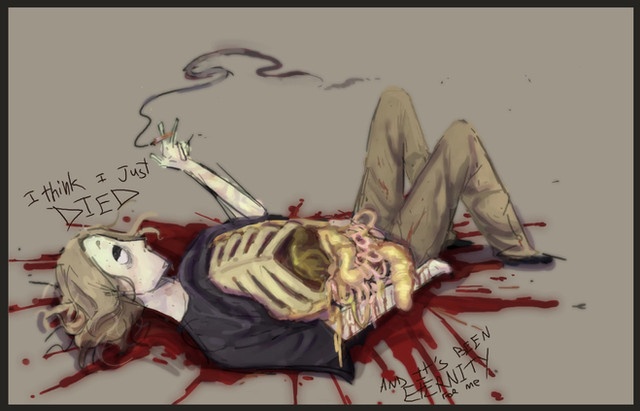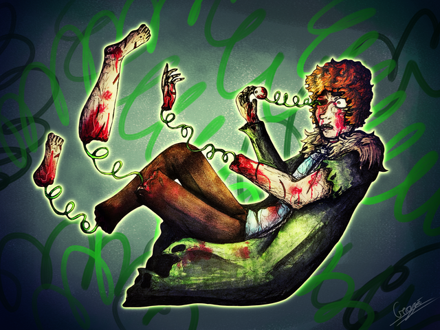 #blood #bloody #broken #cuts #destroyed #freak #freakedout #gore #green #guts #horror #insides #intestines #limbs #messyhair #mixedmedia #oc #originalcharacter #originalstory #red #ripped #scary #scribble #spooky #stitches #violence #snbx #dissamble #horrormacabre #rippedclothes