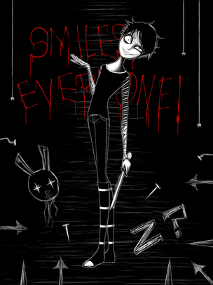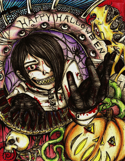 HeySo I have been sketching a semi-clown version of my Spider-Demon OC Akio that I just HAD to draw him in an actual tent.