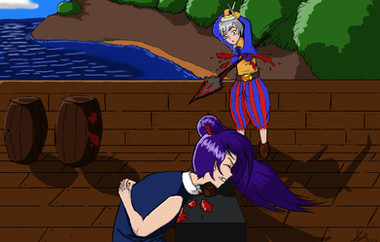 #blood #death #flag #gore #oc #ocean #pirate #sea #skull #sky #treasure #victory #violence #snbx #blondehair #bloody #mixedmedia #originalcharacter #piratecaptain #pirategirl #siblings #successful #traditionalart #victorypose #violent #goreblood #victorygirl #violenceblood