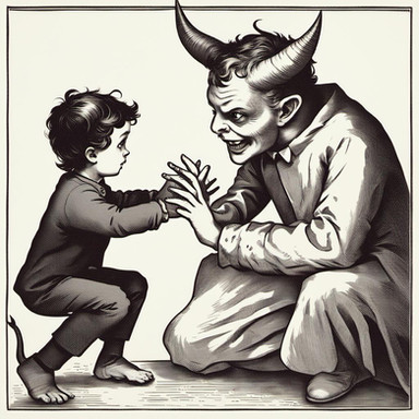 I tried to keep the child adorable in diapers in such. . . just give him that mean, sinister , angry expression. . . and a coupls horns