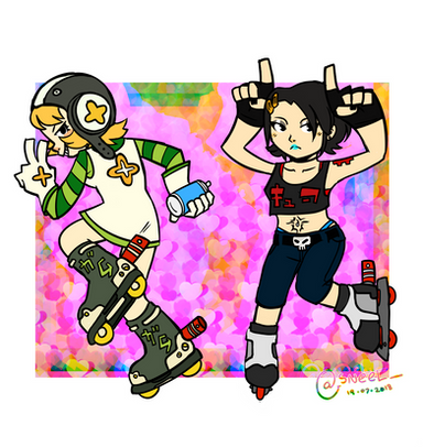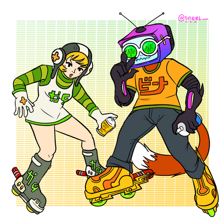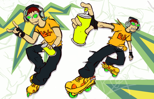 i like the designs/aesthetics of JSRF but i haven't played it, so when i think about doing fanart, i'm at a real loss about what the characters do besides being radical skate freaks... phew.