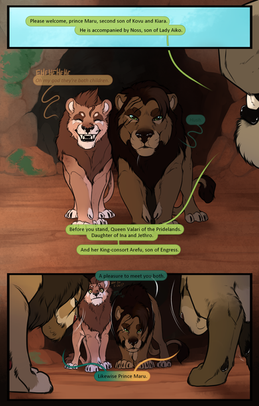 Notes: Was thought dead by the Pride Lands, but was nursed back to health by a traveling Jangwa dignatary and grew up in Jangwa pride before leaving, blind to his right eye