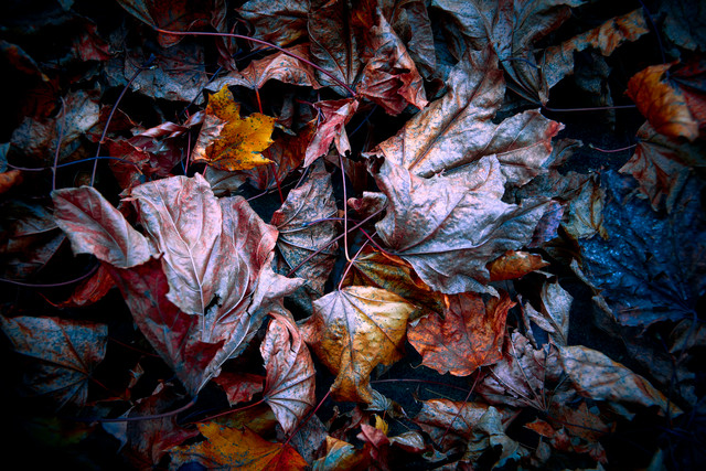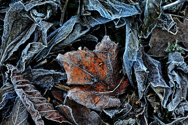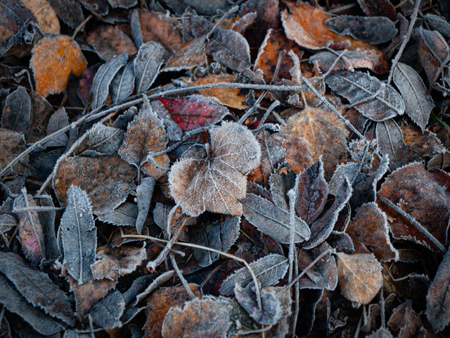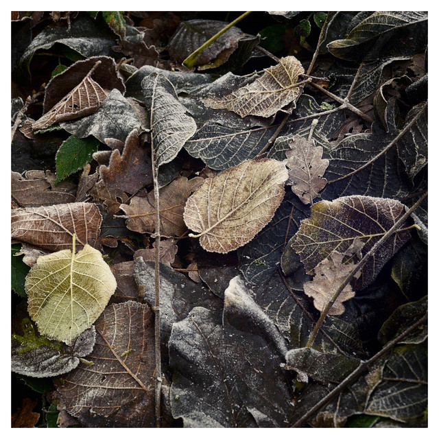 Frosty fallen leaves in dappled Winter lightRelated content