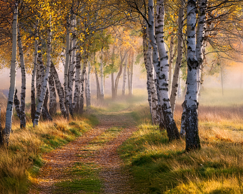 #autumn #autumnal #birch #england #forest #landscape #mist #misty #nature #park #path #silver #track #trail #trees #wood #woodland #yellow