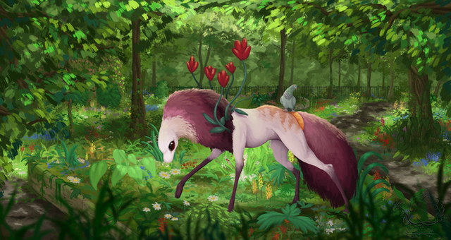 I can't handle the lovely color spectrum of her moss <333 And the wisps in that tail!! You got the lil back spines and everything ~