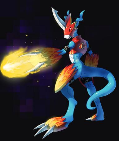 I love this image! A few years back when I was in a Digimon kick, I turned to this picture for reference when I drew Flamedramon. I always thought it was quite skillfully done. I love the color blending in the skin and on his armor. Wonderful work!!