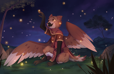 so cuuuuuute! the nose and small muzzle are very very pretty! you did the fur and the wings very well. the forest and the colors are awesome! great work girl!