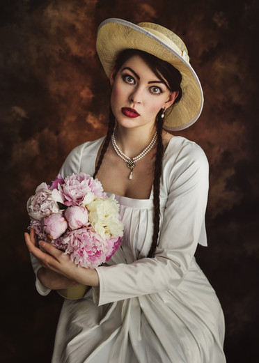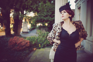 Beautiful model, lovely photography. Really like the outfit and the pose holding the hat box.
