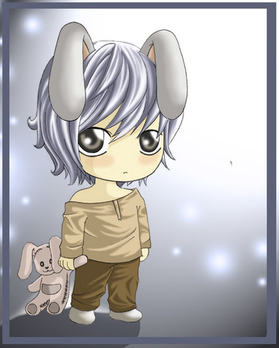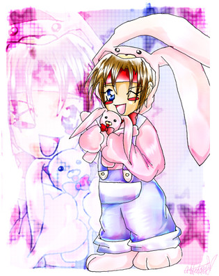 its Yondaime! a lot of people who i've shown this to keeps asking me who he is >___< he needs to be shown more!!! lol anyway, i put him in a rabbit suit cause ... i dont really know >__< lol but i've like seen him around with the rabbit so i guess it symbolises him, um if anyone knows please tell me why its a rabbit!!! o.Oanyway, i'm taking this as a print to manifest too =^_^=
