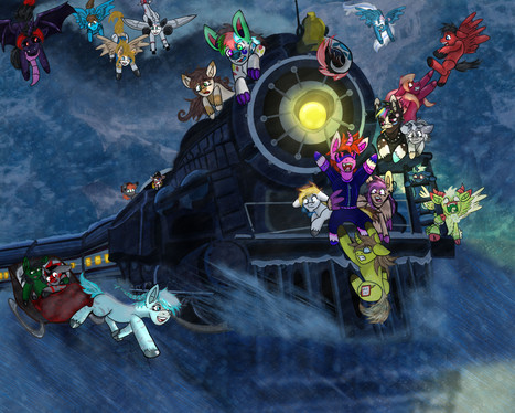 I imagined like, Hello Kitty ( insert Sauron fan scream , referencing this: darkwavethunder45.deviantart.c… ) exploring a haunted rollar coaster in a old abandoned theme park, most likely the old Glove World before Glove Universe was replaced it, with good ole Spongebob and Patrick.
