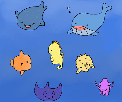 #animal #basket #bread #crab #fish #food #octopus #pastry #pufferfish #shark #sticker #stickers #chibicutekawaii