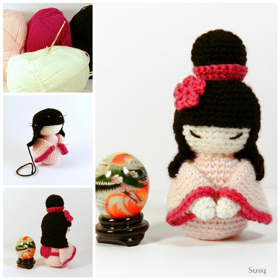 It's been a while since I last updated something. Some time ago, my cousin showed me a cute doll made out of string. I wanted to have one, so I tried to figure out how they were made. After experimenting and searching the net this is the result, a Sailor Venus string doll. I know their hair is generally made out of wool, but I didn't know how to do it and I really like te result, using felt.The doll is made out of string, felt and colored beads as eyes.