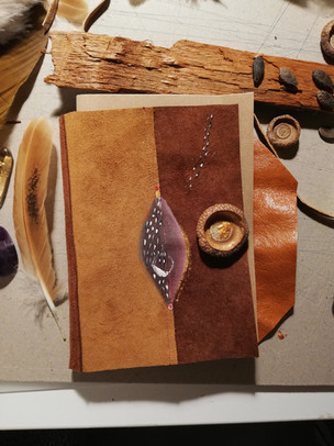 Medieval notebook I've made for my friend ^^ I used leather, bark and paper dyied in tea ^^ I can do notebook like this for 20$I don't remember size of this, but it's similat to A5 book (about 21 x 29cm)