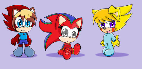 Requested by Ruensor!After I did the animation of Twinklecake blinking on my new iPad, I decided to draw another sketch! And lucky for me, Ruensor requested me to draw Baby Ana as Sonic with Kat as Mighty and Mochi as Ray! This was somewhat simple to do, but still lots of fun!! Just like the Twinklecake animation, Iโm pretty happy of how this turned out! :3