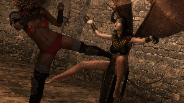 Why are almost all, if not all demonesses white (or asian)? Storywise: it's because the members of a demon harem tend to resemble their leader. Truth: because they better contrast artistically with a darker heroine. If everyone in a scene were all white or all black, it would be less aesthetically pleasing than one with a combination of skin tones. It's the same basic reason why the demonesses are more curvy and voluptuous than the more muscular Sahmika, it's for contrast and variety. I won't rule out an Arabic, Hispanic, or even black demoness at some point though, but it will depend on the scene they're in and the skin textures I own.