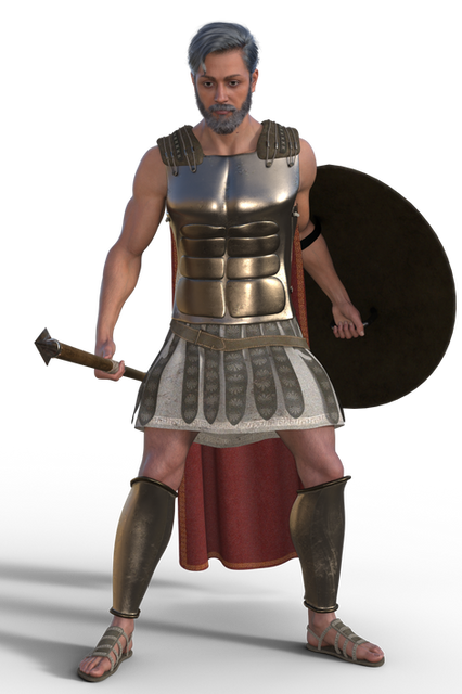 Hm, I think I have his sword and skull, but not the shield. The odd texturing on his other items kinda put me off. Guess I'll try using a V4 shield (of which I have about 80, lol) and turning down the muscles in that one arm next time. Thanks for the suggestion!