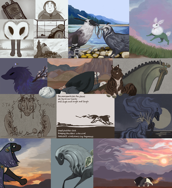 if it doesn't end up a group, you could always just make it a string of submissions or something and lore craft the world around it kdfjdsfl idk, it looks like an interesting concept from your little snippets alone!!