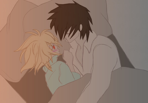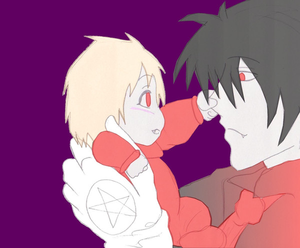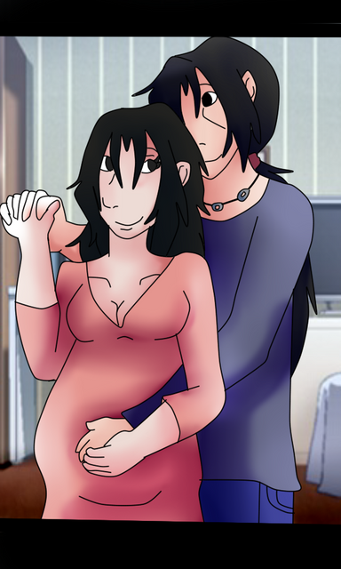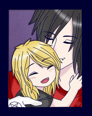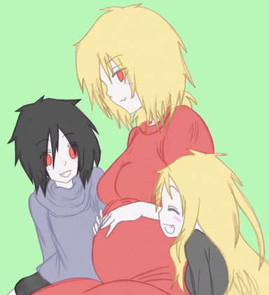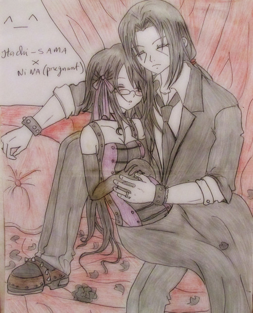 this is a pic i promissed to draw for my dear big sis .......for like AGES ago (sorry im sooooooo late sisin the pic we have a pregnant Shaya and daddy Alucard thinking at the idea of his first grandchildren that are soon to be born
