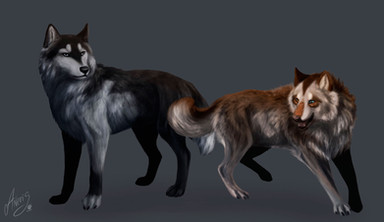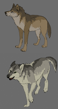 Ooh, really cute style. Your canines would make epic comic characters. :] I love the long legs. Pretty.