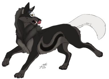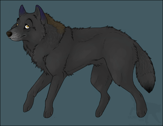 Ooo, this is very nice, I like the realistic yet slightly cartoony way that you've drawn him, and the pose really shows the proper markings on him. I love the sort of half-mane that comes off the back of his neck, it really gives him an adult feel. I LOVE the markings, very realistic and wolfish. The only gripe I'd have would be the way his face is sort of...semi-circle, cutting off at the snout, it looks a bit strange and out of place, but I think that's just your style, otherwise, the whole pic is great! I like it! Can't wait to see more from you