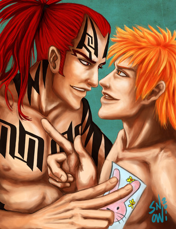 Pure awesome! Omg I love their expressions! Amazing job with Renji's tattoos especially and ohmygoodness Rukia where is your hand going?! Adorable, sexy, and hilarious all at the same time
