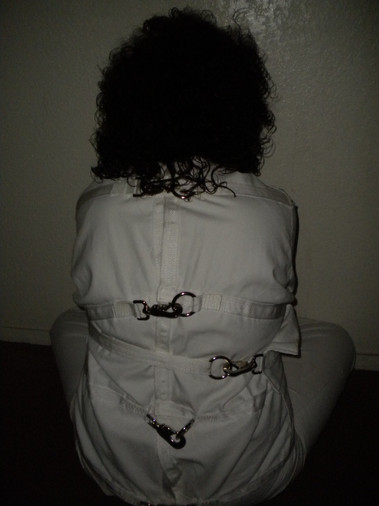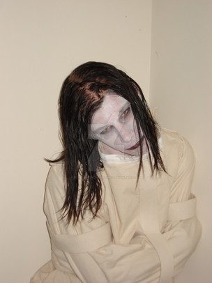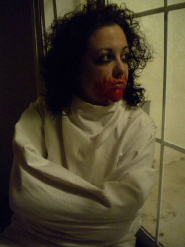 I decided to play around with my straitjacket.My sister finally grew her hair out, and I had some fake candy blood that I never used.