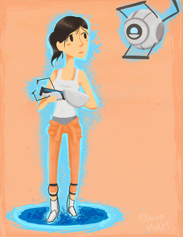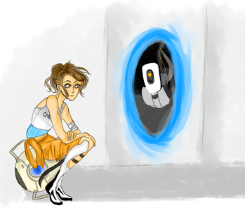 I really really really love the way you drew chell, such a unique style 8D I love the simplicity in this, very clean. Lovely work, faved!