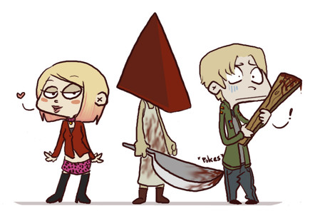 well all of all the silent hill line up i like this one the most cause there is funness in it an i love all those charters...(but not maria an laura i hate them!) but yeah i love it how aobut i do some just for you! should i draw theme or not?! tell me if you do or not!