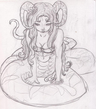 I like this drawing of Lithe as a naga. Her hair looks so beautiful. I love the pose on the upper part of her body and the snake skin on the bottom part.