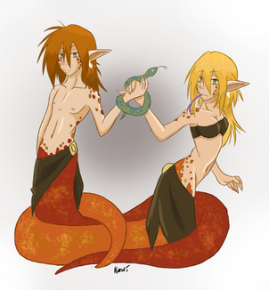 Very Nice! I think you did a good job at drawing Tilslen, better than any guy I could draw T_T, and he really does look like the baby-him in the ref picture!. On a more random note. Eeeeeehehehehe SCALES!! *poke* On a more critique note. They only slightly look like they might fall over, just with the bottom half of their bodies, but i dunno, maybe they're leaning on each other. Just looks a bit funny to me.