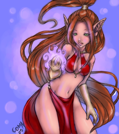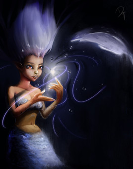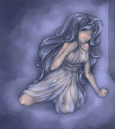 I wasn't sure to label her as a water spirit, sorceress or what.. But I think with those haunted eyes, she must be transforming o.oDoes she want the transformation or no? o.o You fullfill that part in your mind...