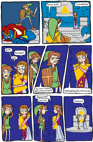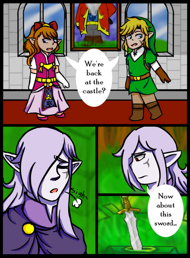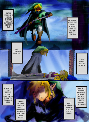 Alright and here's another page of the Zelda Random comic so far. :3Zelda explains a bit of what Ocarina Link was going through and this kinda delves from reading into the 3 way Zelda timeline that's now out and about.
