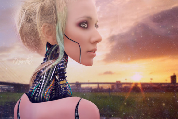 #abstract #girl #robot #scifi #woman #android #blue #contrast #cyborg #face #hair #metal #people #red #shiny #thing #yellow #soad2k