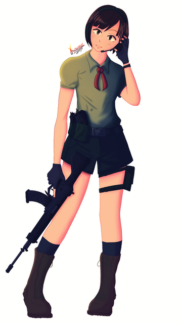 Wah really nice coloring oAo love it, and what kind of gun is the operator using? it looks like one of those bend around the corner gunΒ