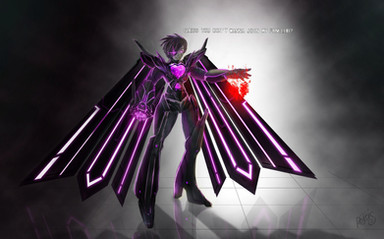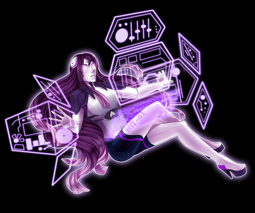 This is Setebot in the Genocide route! She appears right after you kill Mettaton, that is, if you did.Her purple sword things are made from her holograms and basically folded into each other to hastily make sharp objects. She controls where ever the swords flies with a flick of her hands, not to mention the overbearing bass noises coming from the hologram amplifiers.