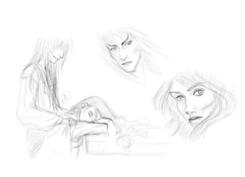 I like that one too, though I messed up Jarath's face, (I can't draw his face, it is so annoying!) they look quite passionate and sinister as king and queen!