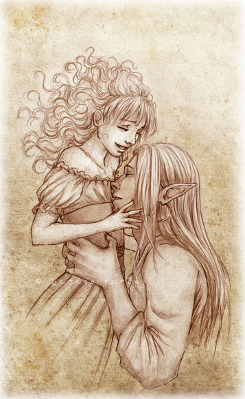 Thank you! I was thinking of giving her a dress of peach and rose gold in this picture; and he a deep burgundy and gold; sensual colours...
